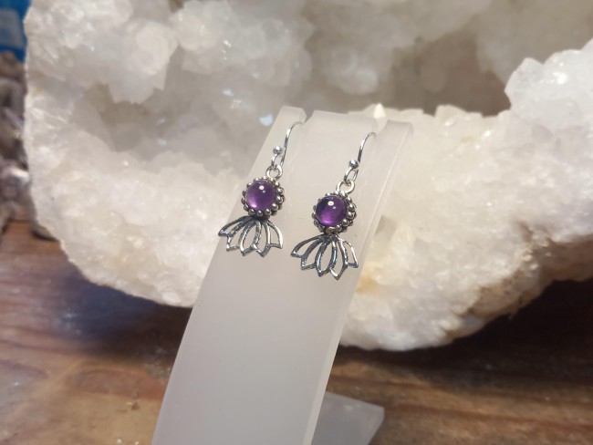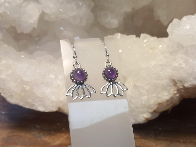 Très jolie paire de boucle d'oreilles en argent 925 et en Améthyste.
