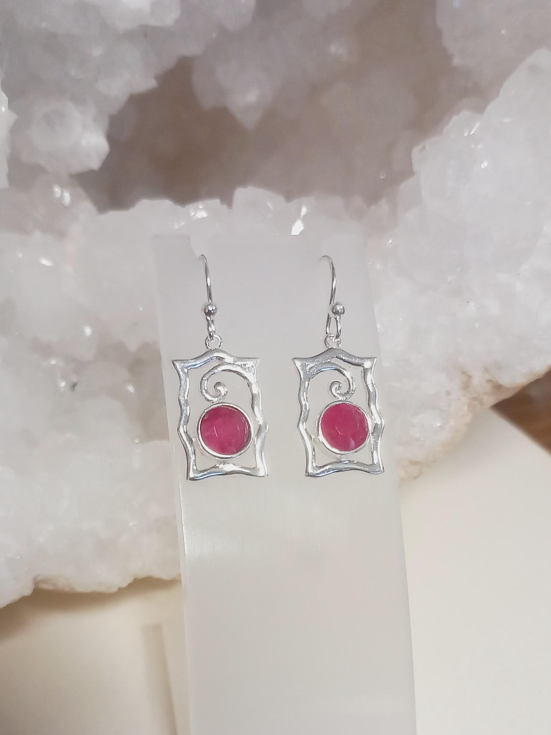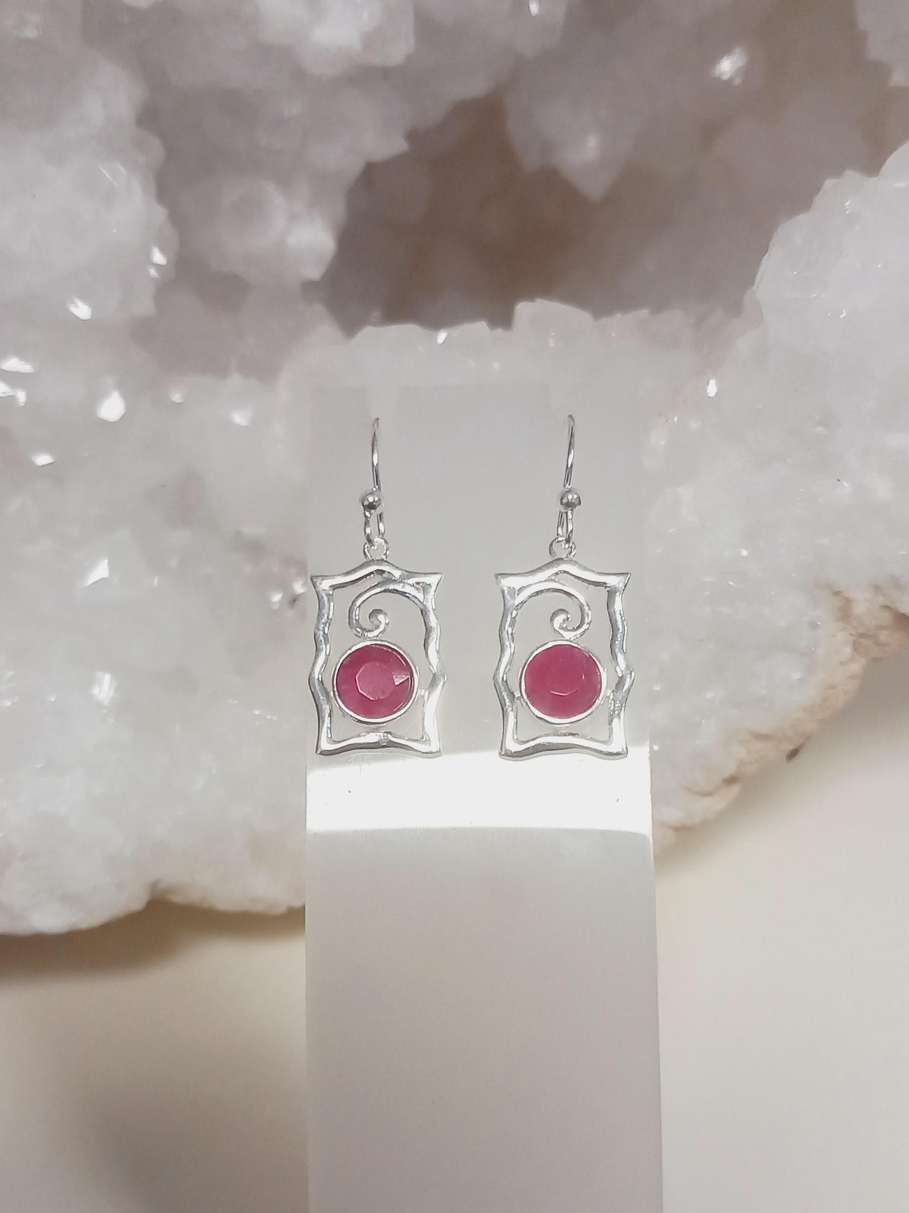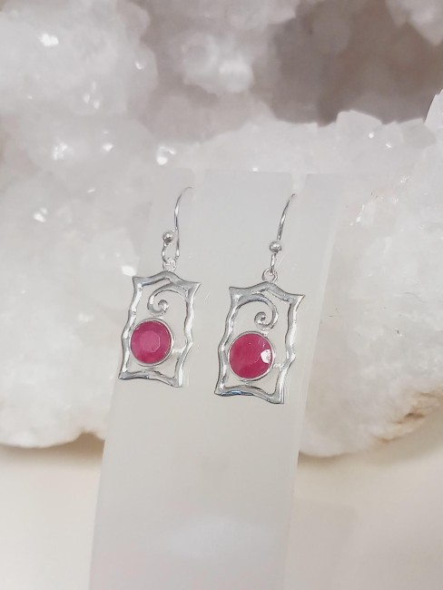 Très belle paire de boucle d'oreille en forme de livre ou de cadre avec une pierre en rubis sertie .