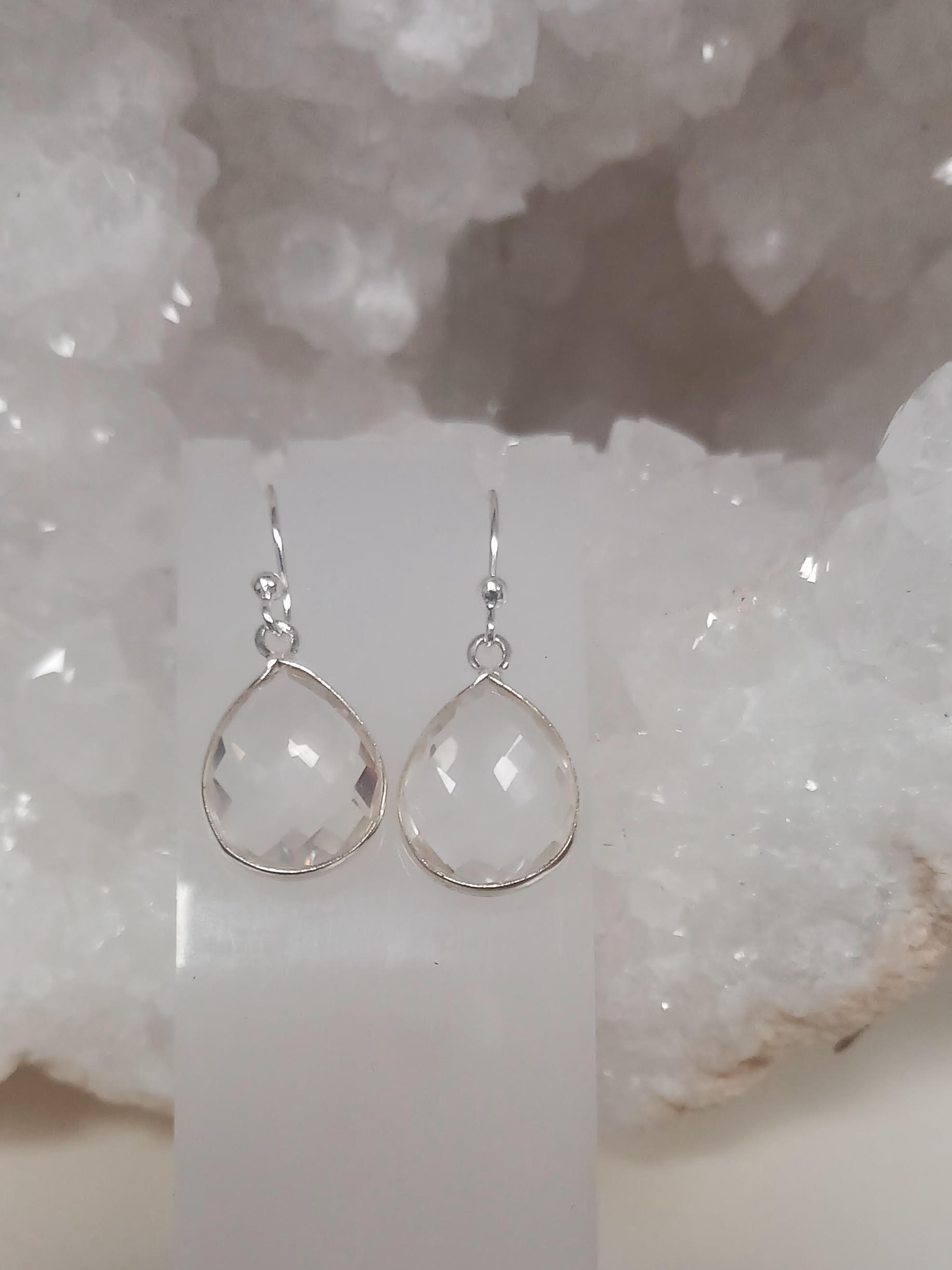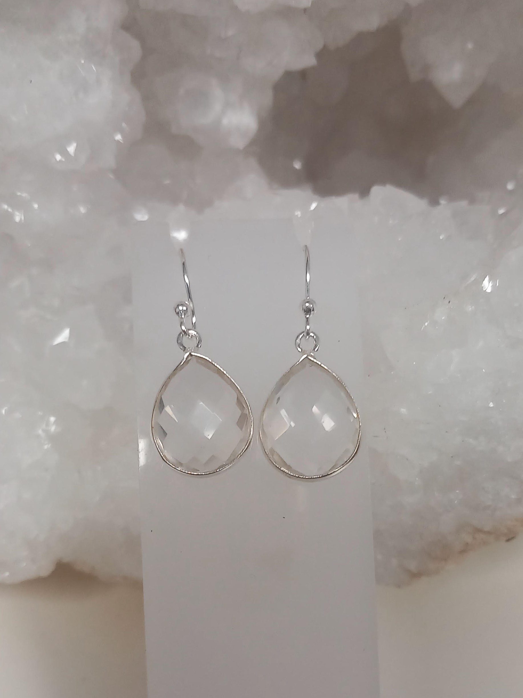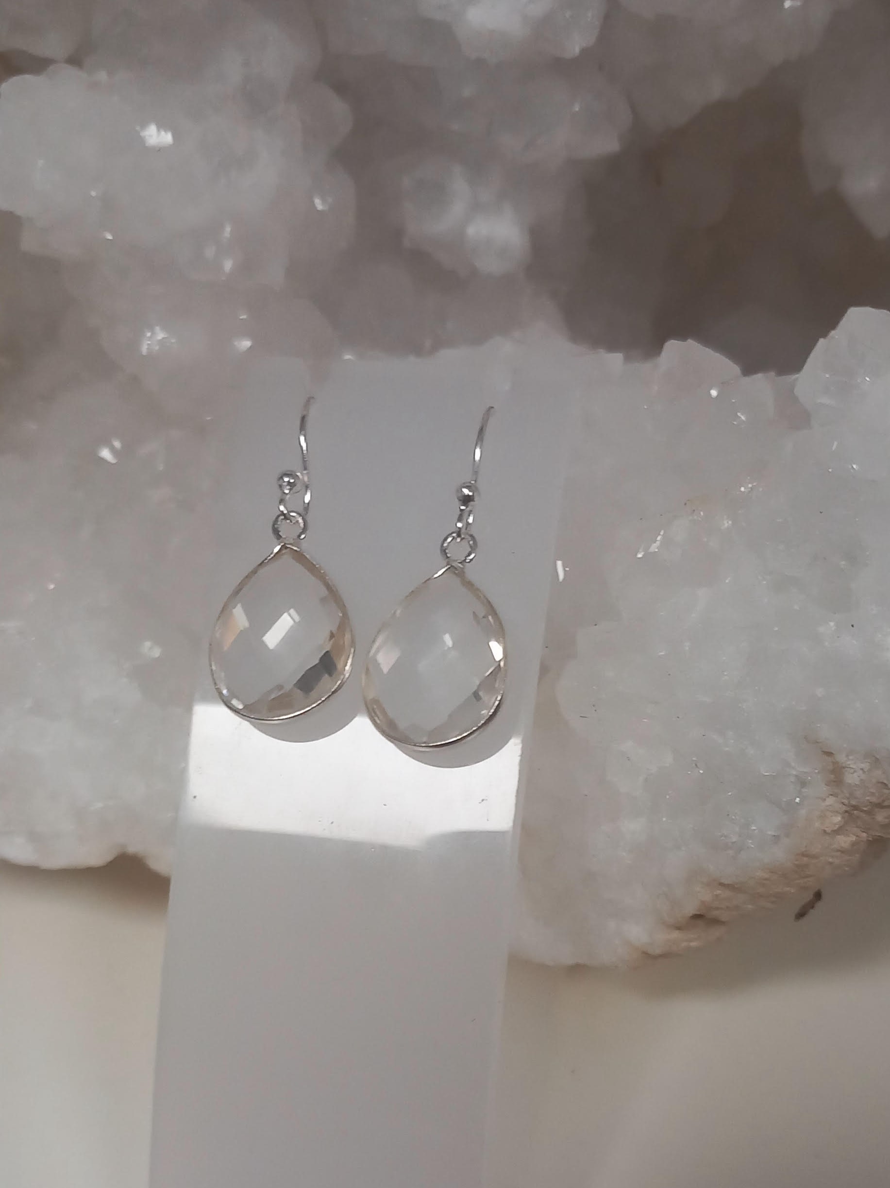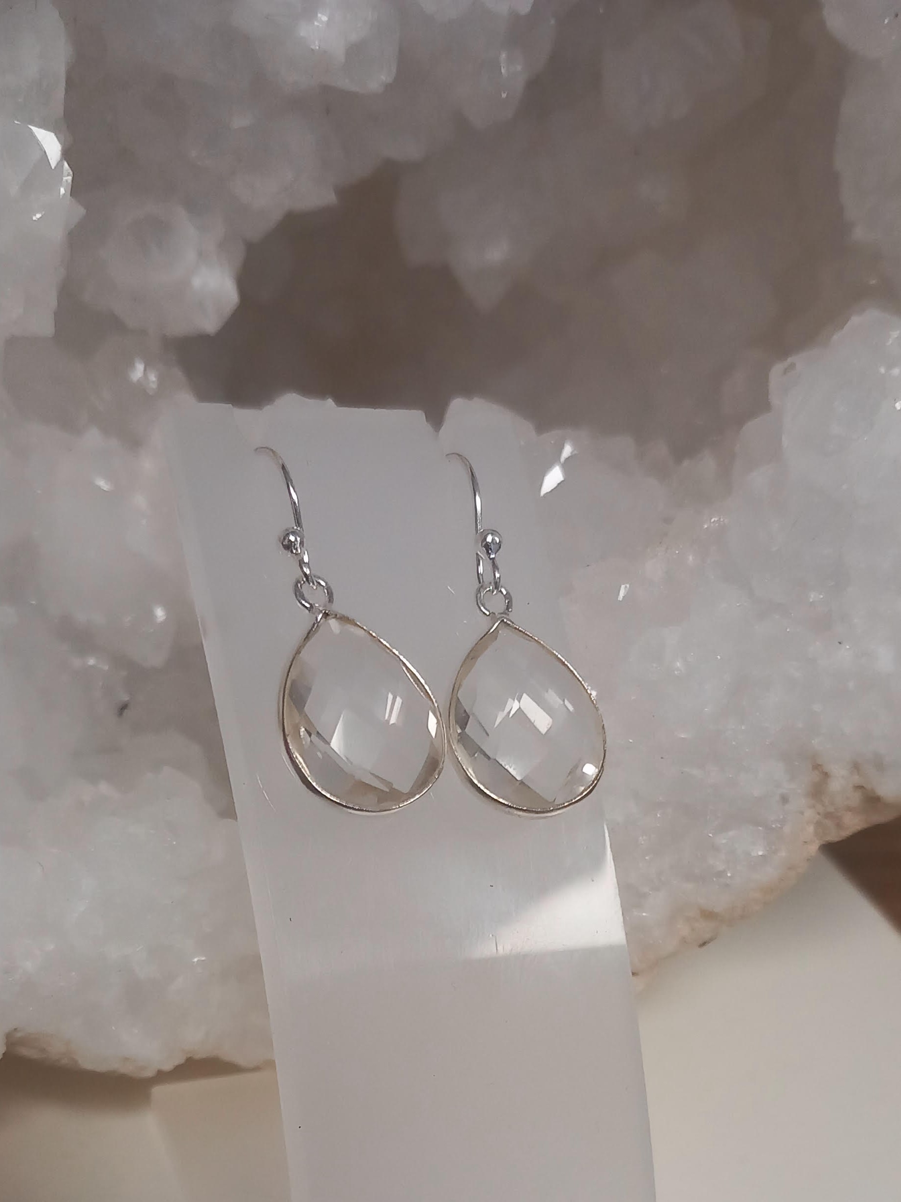 Très jolie paire de boucle d'oreilles en cristal de roche sertie sur de l'argent.