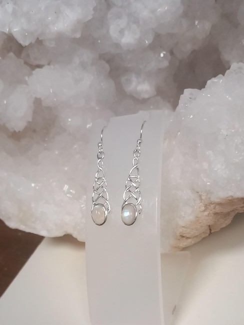 Boucle d'oreille en Pierre de Lune Torsade sertie sur de l'argent 925.