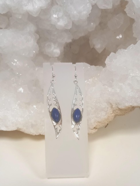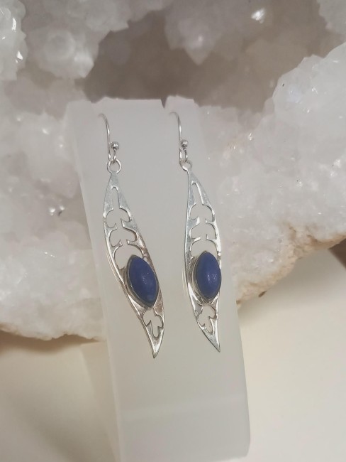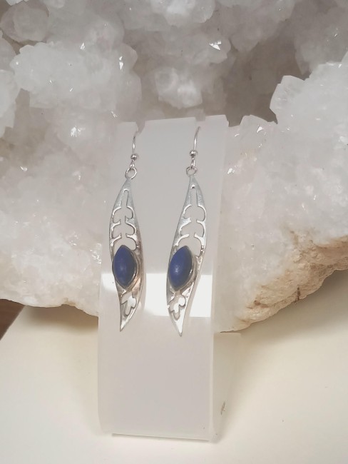 Très jolie paire de boucles d'oreilles en lapis lazuli en forme de feuille sertie sur de l'argent 925.